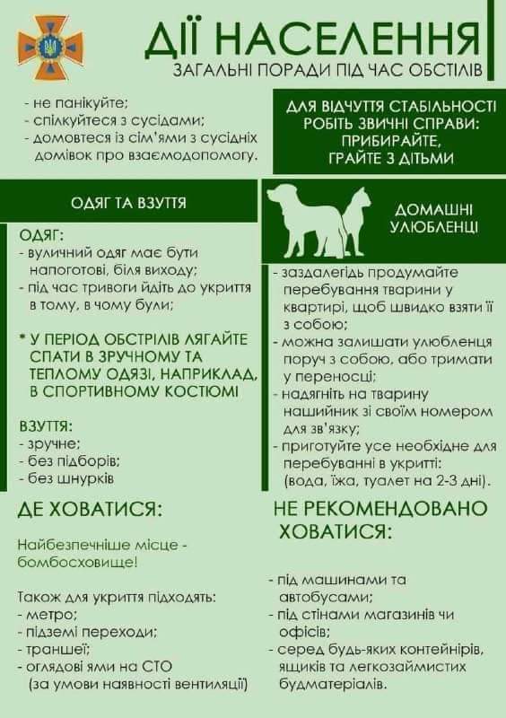 Пам'ятка населенню у разі виникнення надзвичайних ситуацій (артобстріл населеного пункту)