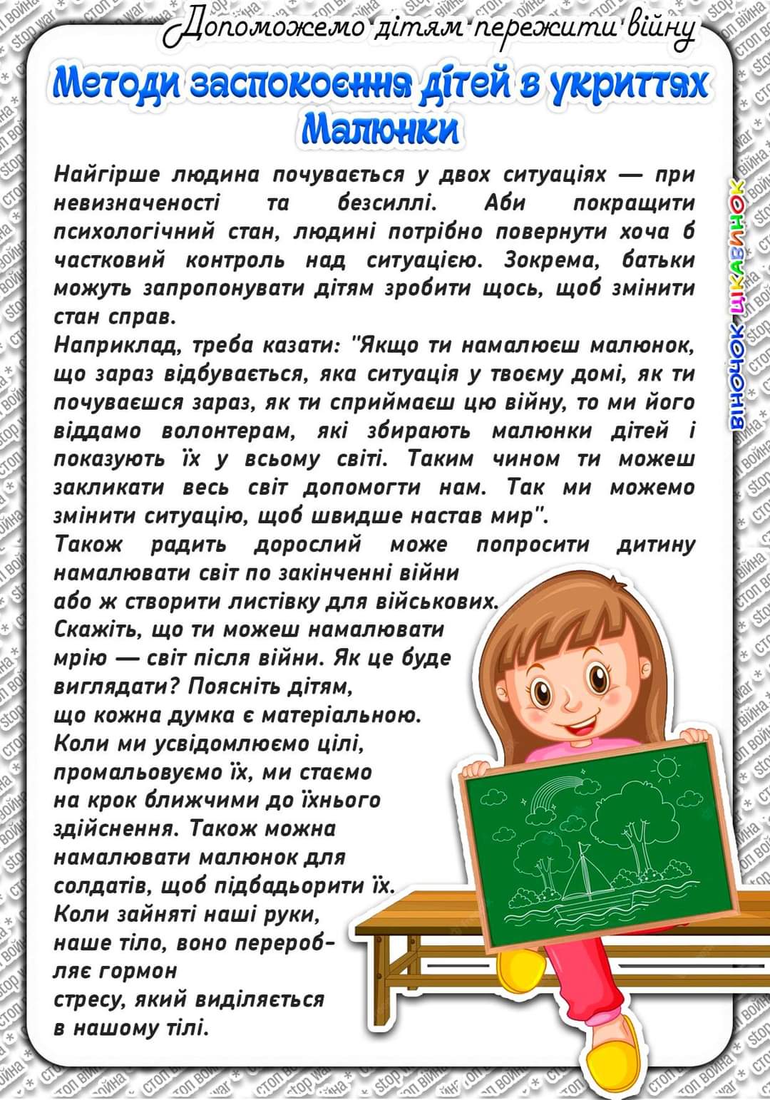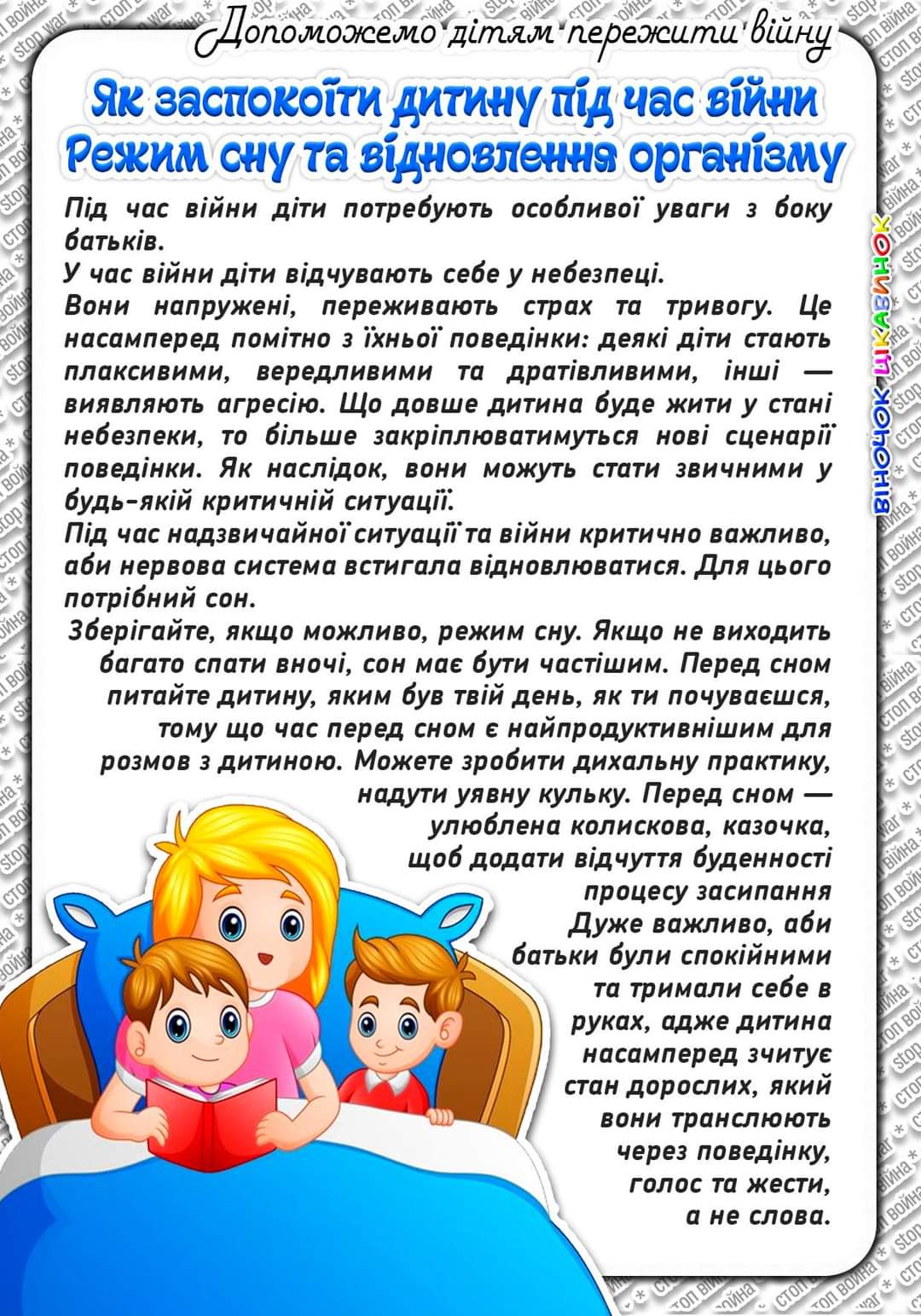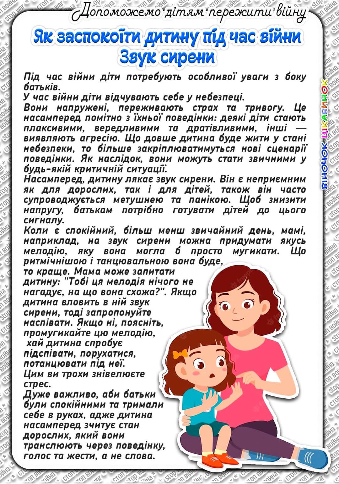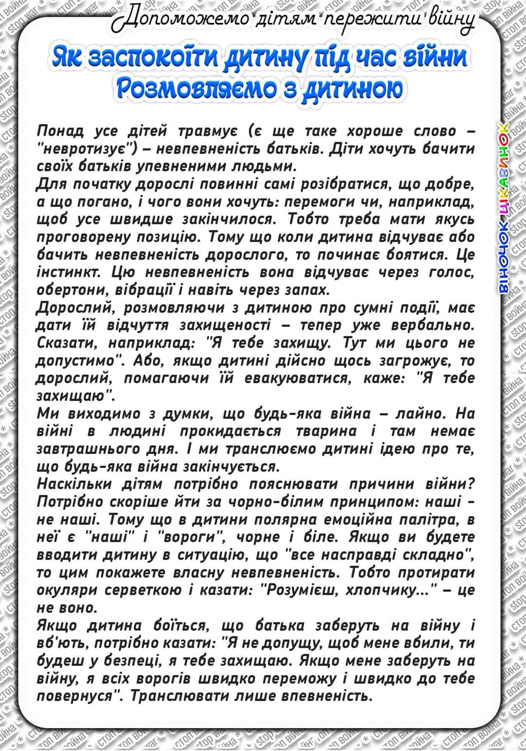 Продовжуємо публікувати поради для дітей та їхніх близьких у межах інформаційного коміксу під час воєнного стану в нашій державі.